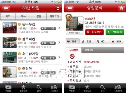 그런데 이런 맛집소개 앱 가운데 이런 의심을 받지 않는 앱이 있다. '30년맛집'이 바로 그것이다. 이 앱은 전국 45만개 음식점 중에서 30년 이상 된 맛집만 소개하고 있다.