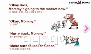 스마트폰의 앱은 다양한 분야에서 계속해서 새롭게 출시가 되고 있다. 그 중에서 유아 학습을 위한 앱이 있어 소개한다. '늑대와 일곱 마리 아기염소'는 재미있는 동화도 보고 영어 학습을 동시에 할 수 있다.