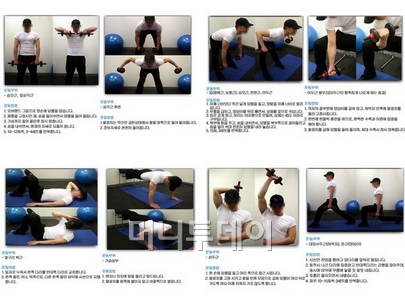 운동방법은 사진과 설명이 같이 나와 있어 이해하기 쉬운 편이며 주의점도 같이 있어 설명으로 부족한 운동방법을 보충하고 있다. 운동방법은 부위에 따라 1~4개의 방법을 소개하고 있다.