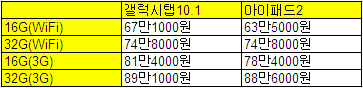 관심을 모았던 갤럭시탭 10.1 출고가는 와이파이 버전기준 16GB가 67만 1000원, 32GB는 74만 8000원이며 3G모델은 16GB가 81만 4000원, 32GB는 89만 1000원으로 책정됐다.