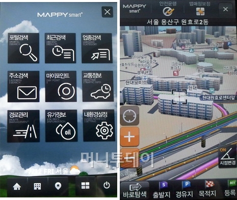 내비게이션은 '맵피 3D'를 탑재해 화면이 큰 만큼 차량용 내비게이션으로 사용해도 손색이 없다. 실시간 교통정보를 지원하며 무선으로 지도 업데이트도 가능하다. 지도 이동이나 메뉴이동 속도가 빨라 답답하지 않다.