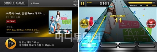 그럼 게임을 시작해보자. 게임은 한 곡씩 플레이하는 '싱글'과 3곡을 한 번에 선택해 즐기는 '논스톱'으로 나뉘어 있다. 싱글이던 논스톱이던 사용자 취향에 따라 선택을 하자.