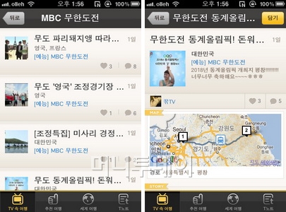 TV속 전국 맛 집에 이어 TV속 여행 앱도 등장했다. 문득 틀어본 TV에 나온 멋진 여행지. 누구나 한번쯤 그 곳이 어디인지 궁금할 것이고 가보고 싶다는 생각을 하게 된다. 하지만 어떻게 가야 할지 감이 오지 않는다. 이 때 필요한 앱은 바로 '떠나요 TV속 여행'이다.