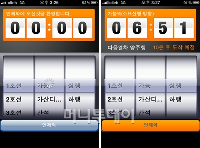하지만, 스마트폰 사용자에게 이런 이야기는 옛날 이야기다. '언제와'를 이용하면 지하철 도착 시간을 실시간으로 확인할 수 있기 때문. '언제와'는 서울시에서 제공하는 정보를 토대로 실시간 지하철 도착 정보를 제공하는 앱이다. 간단한 구성으로 사용하기 쉬운 인터페이스를 제공한다.