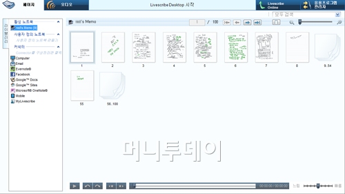 음성 녹음도 지원한다. 필기를 하면서 녹음을 동시에 할 수 있는 것이다. 재미있는 점은 이렇게 만들어진 노트를 다시 볼 때 사용자가 필기한 부분을 선택하면 그 때 녹음된 내용이 바로 재생이 되는 점이다.