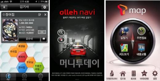 '김기사', '올레 내비', 'T맵'은 일반 차량용 내비게이션보다 똑똑한 내비게이션이다. 실시간 교통 상황을 반영해 빠른 길로 안내를 해주기 때문. 통신사나 자신의 스마트폰 운영체제에 따라 3가지 앱 중에서 하나를 선택해 이용하면 된다.
