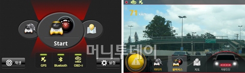메뉴는 마이카, 블랙박스, 지도로 구성돼있다. 블랙박스 기능은 스마트폰의 GPS와 각종 센서 및 카메라를 활용한 기능으로 차량 전면을 녹화할 수 있다. 녹화된 영상은 앱 초기화면의 '재생' 메뉴를 통해서 확인 가능하다.