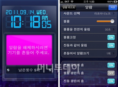 하지만 '링딩동'은 단순히 소리만 내어주는 알람 앱과는 다르다. 알람의 메인은 단순하다는 기존 선입견의 한계를 넘어서, 화려한 인터페이스를 가지고 있으며 사용 편의성까지 고려했다.