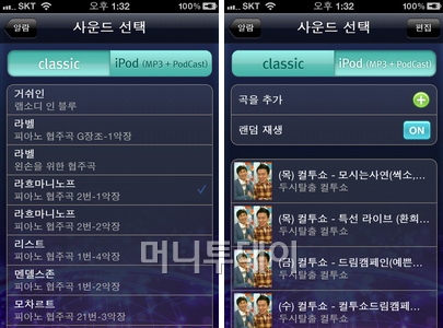 알람이용은 왼쪽 위의 시계 아이콘을 눌러 관리 화면으로 이동한다. 알람은 '링딩동'만의 장점이 묻어나는 메뉴이다. 볼륨 고정, 클래식 알람 소리 지원, 볼륨 페이드인 등 기능을 설정할 수 있기 때문이다.