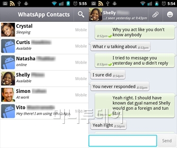 왓츠앱은 모바일 메신저의 원조이다. 사실 카카오톡 보다 먼저 출시가 되어 아이폰과 블랙베리에서 많은 사랑을 받았던 메신저인데, 유료였기 때문에 그 파급력에 한계가 있었다. 따라서 국내시장에서 크게 알려지지 못했으며 이윽고 카카오톡이 나오면서 그대로 묻혀버린 메신저이다.