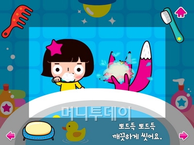 그리고 교육적인 측면도 빠지지 않았다. 30여 개의 일상 단어와 다양한 의성어, 의태어가 나오며, 중간 중간 등장하는 글씨나 아이템을 선택하면 음성으로 들려주기 때문에 단어의 반복학습이 가능하다.