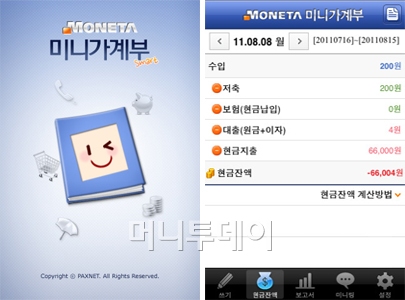 '모네타 미니 가계부'는 웹과 앱이 연동되는 것이 큰 특징이다. 그래서 PC를 이용할 때는 웹에서 입력 하면 되고, 외부에 있을 때는 스마트폰을 통해서 입력하면 된다.