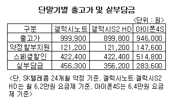 삼성전자 모바일 기기 중 최고가…아이폰4S와 출고가 비슷하나 실부담금 많아