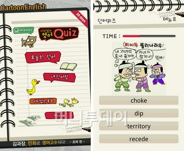어려운 영어를 게임처럼 재미있게 체득할 수 있는 앱이 속속 등장하고 있다. '어이없는 영어퀴즈' 앱도 이 중 하나다. 이 앱은 우리가 어린 시절 영어 단어를 외우기 위해 애써 문장을 만들었던 모습을 담았다.