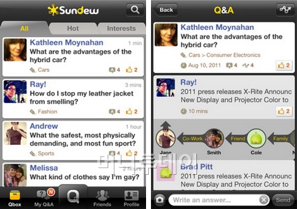 스마트폰을 통해 소셜네트워크서비스(SNS)의 지인들과 질문을 공유하고 답변을 얻을 수 있는 앱이 있다.
