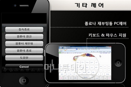 접속 후 PC제어는 멀티 터치를 활용한다. 한 번 터치는 마우스 왼쪽 클릭이고, 터치를 한 상태에서 또 터치를 하면 마우스 오른쪽 클릭이 된다. 이 밖에도 확대, 축소, 상하 이동을 할 수 있으며 키보드는 앱 내의 화상키보드를 이용하면 된다.