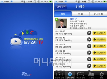 앱을 이용해 학습하는 것에 부족함을 느낀다면 동영상 강의를 들어보자. '트위스터 TV'는 평생 무료 영어 동영상 강의를 제공하는 앱이다.