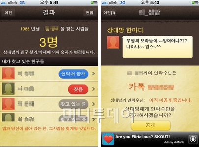 그런데 이렇게 등록만 한다고 찾아주는 것은 아니다. 서로가 찾아야지만 연결이 되고 연락처를 확인할 수 있다. 때문에 이 앱으로 상대를 찾게 된다는 것은 상대도 나를 찾는 다는 것이고, 좋은 의미를 둘 수 있다.