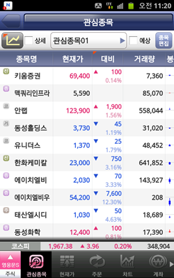 '영웅문S'는 단순하지만 디테일에 강하다. 관심종목 메뉴의 경우 다른 MTS보다 많은 정보를 제공하는데도 사용이 편리하다. '나만의 화면 편집 기능'을 통해 투자자들이 자신에게 적합한 폴더 및 항목을 자유롭게 만들 수 있는 코너도 있다.