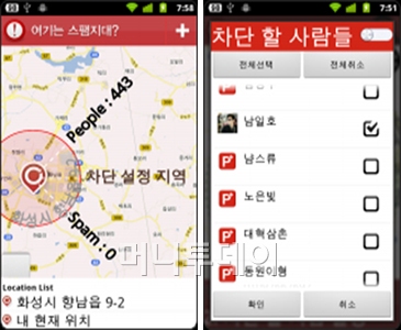 장소에 따라 번호를 차단하는 위치기반 스팸 차단 서비스 앱이 출시됐다.