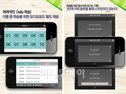 토익, 토플, 텝스 등 시험 어휘와 영어 말하기를 한 번에 학습하도록 도와주는 앱이 있다.