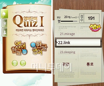 영어단어 암기 막무가내로 외우고 쓰기를 반복하고 있다면 이번 기회에 학습방법을 바꿔보자. '영어단어퀴즈'는 스피드게임을 즐기듯 단어 맞추기를 하다보면 자연스럽게 암기가 되게 하는 학습방법을 이용한다.
