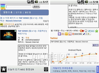 관심이 가는 앱을 터치하면 앱에 대한 상세 정보를 볼 수 있다. 정보에는 라이벌 앱 표시 및 T스토어 순위 변동을 그래프를 통해 확인해 볼 수 있다.