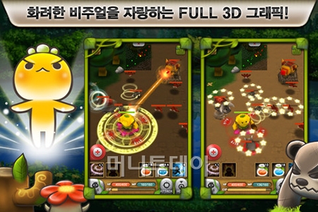 '플랜츠워'는 맹수들에 맞서 싸우는 식물들의 숲 속 전쟁 이야기다. 게임 내 모든 그래픽은 3D로 제작돼 화려한 시각 효과를 자랑한다. 두 손가락을 이용해 화면의 확대, 축소 및 다양한 시점으로 전환도 할 수 있다.