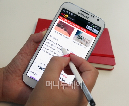 갤럭시 노트 1000만대 돌파의 주역이었던 S펜의 기능은 한층 업그레이드됐다. 우선 필기감이 한결 좋아졌다. 갤럭시 노트2에 적용된 S펜은 8mm로 두꺼워져 잡기가 더 수월하다.