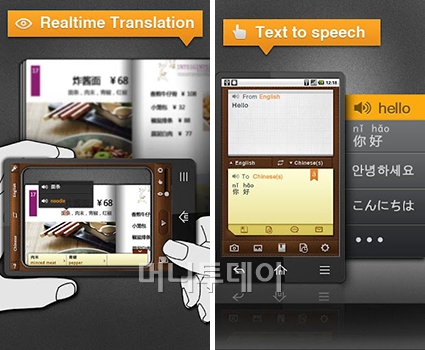'캠사전(CamDictionary)'은 이런 입력의 불편을 없앤 번역 앱으로 스마트폰의 카메라를 이용해 번역할 부분을 비추면 바로 해석을 보여준다.