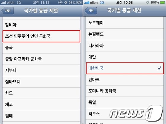 iOS6 국가별 등급제한 설정, '대한민국' 사라지고 '조선 민주주의 인민 공화국'표기