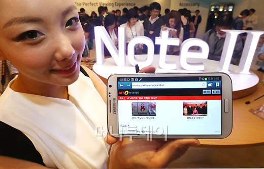 삼성전자가 26일 오전 서울 서초사옥에서 '갤럭시노트2'를 선보이고 있다. '갤럭시노트2'는 전작보다 커진 5.5인치 대화면에 1.6기가헤르츠 쿼드코어 프로세서와 3,100밀리암페어시의 대용량 배터리를 탑재했으며 노트필기 기능인 'S펜'의 사용성이 대폭 강화된 것 이 특징이다. 독자들의 PICK! '아들 불륜' 조갑경 예능 출연에 전며느리 분노..."난 고통 속에 사는데" 의사 남편 외도 봐줬더니 또…"상간녀 위자료도 대신 내" '은퇴' 조진웅, 말레이시아 목격담…4개월 만에 알려진 근황 "총각인 줄 알고 결혼" 빚더미 남편, 전처·자식 숨겼다...아내 충격
