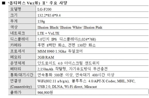LG전자(112,500원 ▲6,900 +6.53%)는 '옵티머스뷰'의 후속작 '옵티머스뷰2'를 28일부터 이동통신 3사를 통해 순차적으로 출시한다고 27일 밝혔다. 출고가격은 96만6900원.