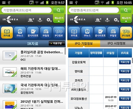 '투자자와 상장사의 스마트한 만남'을 위해 통합된 IR(기업설명회)전문 애플리케이션(앱) 'IR코리아'가 출시됐다.