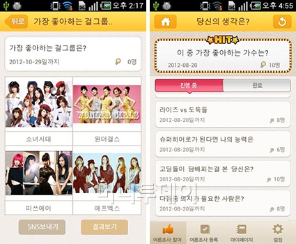 최근 이슈나 유행과 관련된 다른 이들의 생각을 살펴보고 자신의 의견을 제시하는 것은 물론, 각종 설문조사 결과를 공유할 수 있는 애플리케이션(앱)이 있다.