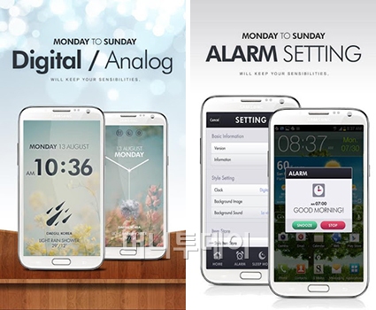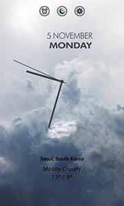 앱을 실행하면 날짜, 요일, 시간, 현재 사용자 위치 주변 날씨 등이 메인 화면에 표시된다. 15종의 날씨 아이콘과 현재 날씨에 따라 자동으로 변경되는 앱 배경 화면을 지원해 그 날의 날씨 상태를 직관적으로 확인할 수 있다.