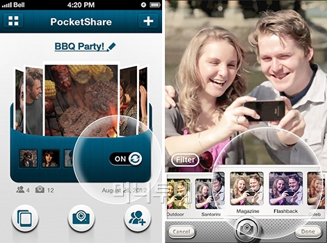 '포켓쉐어(PocketShare)'는 이런 점에 착안, 이용자들이 '포켓(사진 주머니)' 모양의 앨범을 만들어서 다른 이용자들과 쉽게 공유할 수 있도록 하는 애플리케이션(앱)이다. 이용방법도 쉽다. 포켓을 만들어 그 안에 사진을 담고, 공유할 친구를 선택하면, 친구들의 스마트폰으로 사진이 전송된다. 사진은 스마트폰에 저장된 사진과 '포켓쉐어'로 촬영한 사진 모두 공유 가능하다.
