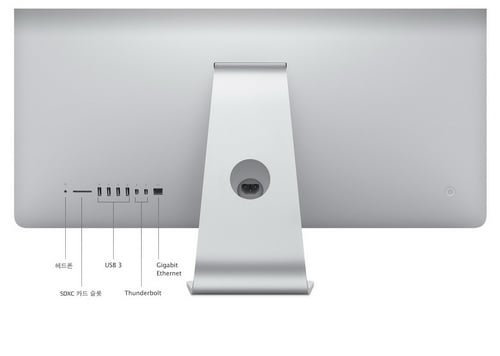 제품 전면에는 페이스타임HD 카메라가, 후면에는 4개의 USB 3.0 포트, 2개의 썬더볼트 단자, 1개의 유선랜 연결 단자가 나란히 위치해 있다. 후면에 단자들이 몰려 있어 외관상 깔끔하긴 하지만 이용하는데 있어서는 다소 불편하다.