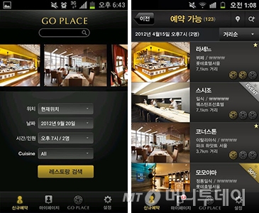 '고플레이스'를 이용해 실제 메뉴판 및 가격을 확인하고 원하는 조건의 테이블을 예약할 수 있다. 예약 후 실제 방문하면 각 레스토랑에서 할인 서비스나 스페셜 서비스를 제공받을 수 있다. 특별한 날 저렴한 가격에 분위기 있는 레스토랑을 방문하고 싶다면 이 앱을 십분 활용해보자.