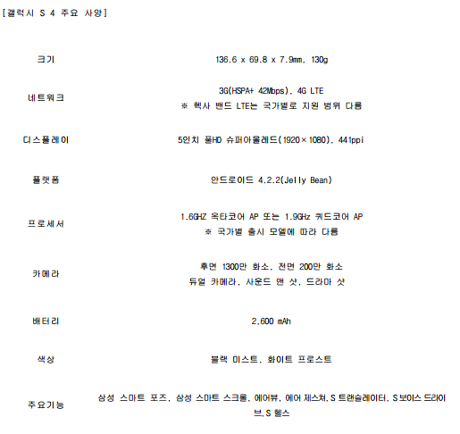 한편 갤럭시S4'는 최대 6개의 LTE 주파수를 지원하는 '헥사 밴드 LTE'를 채용해 전 세계 거의 모든 LTE망을 지원해 LTE 로밍 서비스 이용이 가능해졌다.