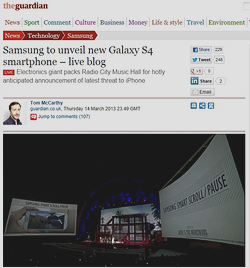 ▼ 아래는 삼성전자의 '갤럭시S4' 공개 행사 모습