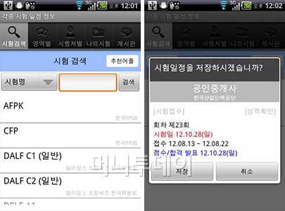 자기개발을 위한 자격증을 비롯해 다양한 시험에 대한 준비를 하고 싶다면 '각종 시험 일정 정보 2013' 애플리케이션(앱)을 준비하자.