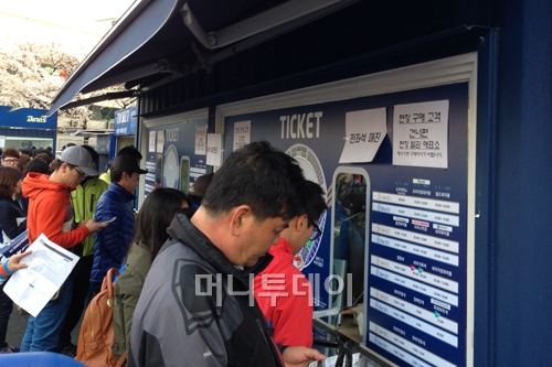 김 대표의 열정만큼이나 창원 팬들의 열정도 뜨거웠다. 인터넷 예매로 이미 표가 동났고 예매 취소분에 대한 현장 판매도 일찌감치 매진돼 매표소 앞에는 전좌석 매진이라는 종이가 붙었다. 출입문에는 경기 전 긴 줄이 늘어섰다.