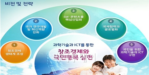 최문기 미래부 장관은 이날 업무보고 자리에서 "이미 세상에 존재하는 산업만으로는 일자리 창출과 경제성장에 한계가 있다"고 진단하고 "과학기술과 ICT를 세계 최고 수준으로 육성해 신산업을 창출하고 각 산업에 융합해 창조경제를 실현해야한다"고 강조했다.