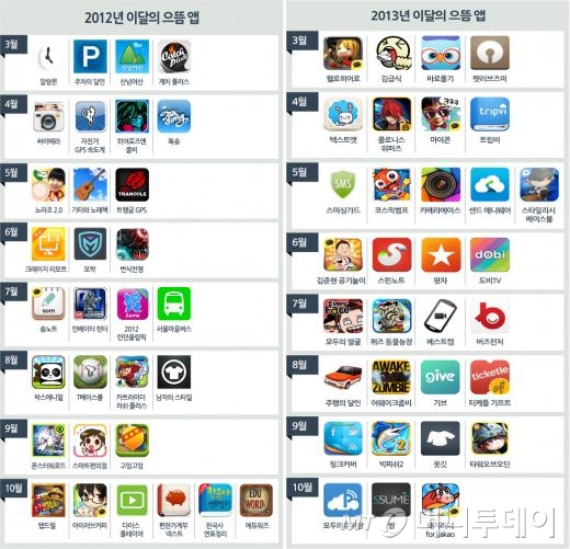 [2013대한민국모바일앱어워드]2010~2013년까지 '앱어워드'에서 배출한 으뜸앱 4회째를 맞이하는 '2013 대한민국 모바일앱 어워드'. 2010년 시작으로 2013년에 이르기까지 '이달의 으뜸앱'을 수상한 100여 개가 넘는 앱을 한데 모아봤다. 독자들의 PICK! "자습 때 둘이 사라져"...홍서범 아들 불륜, 학생들 잇단 제보 월 700만원 벌어도..."생활비 30만원, 한국인 남편 짠돌이" 8살 차이 장모·사위, 금단의 관계로...회복 불가 외도 사례 "며느리 불륜" 공방에...신혼집에 몰카 설치한 류중일 전 사돈