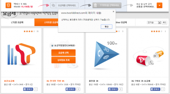 SK텔레콤 공식 온라인 맞춤샵 'T월드 다이렉트'에서 LTE폰을 구입하기 위해서는 LTE 요금제에 가입해야 한다. 예컨대 맞춤샵에서 '넥서스5 16G'를 선택한 후 3G 요금제를 선택하면 "LTE요금제만 선택이 가능하다"고 안내한다.