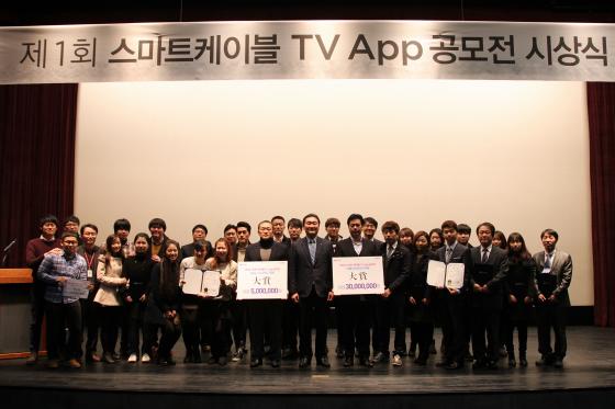 티브로드는 23일 HTML5 기반 스마트 생태계 조성을 위한 '제1회 스마트 케이블TV 애플리케이션 공모전 시상식'을 열고 16개 수상작에게 총 2억2000여만의 상금을 수여했다고 밝혔다.