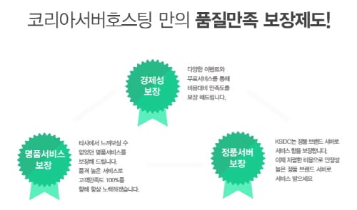 우선, 다양한 이벤트와 무료 서비스를 대폭 확대하여 비용대비 만족도를 크게 높였으며, KSIDC는 정품 브랜드 서버로 서비스하는 것을 보장하는 정품서버 보장은 저렴한 비용으로 안정성 높은 정품 브랜드 서버를 이용할 수 있도록 제공된다.