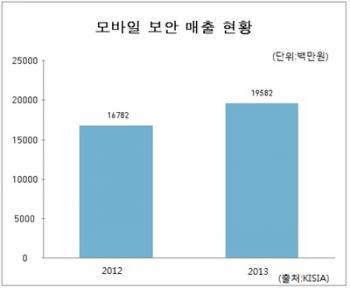 모바일 보안에 대한 위기감이 커지는 가운데 개인 및 기업 대상 모바일 관련 솔루션 출시도 늘고 있다. 지식정보보안산업협회(KISIA)에 따르면 지난해 모바일 보안 매출은 195억8200만원으로 전년보다 16.7% 증가했다. 모바일 보안을 포함한 네트워크 보안이 이 기간 2.3% 증가한 데 비해 큰 폭으로 늘었다.