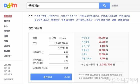 다음, 연봉계산기 등 계산기 검색 10종 서비스